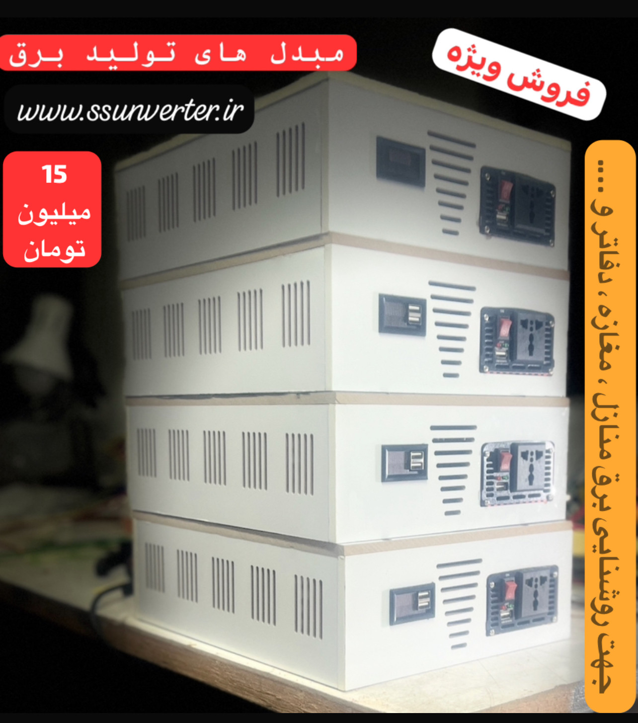 دستگاه تولید برق ( اینورتر ) ۱۵۰۰ وات ولتاژ ورودی ۱۱۰ ولت DC ولتاژ خروجی ۲۲۰ ولت AC فرکانس ۵۰ یا ۶۰ هرتز سینوسی خالص۴۵٬۰۰۰٬۰۰۰ تومان